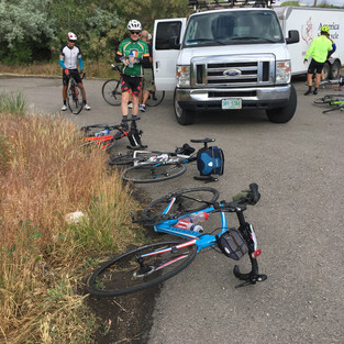 SAG stops provide the usual fare. There are granola bars, fig newtons, bananas, goldfish, cookies, and raisins. Today's stop also included pickles and watermelon! It is a continuous munch fest at the SAG, then back on the bicycles.