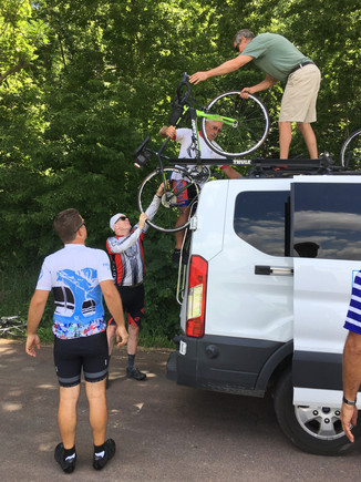 The morning ride moved along quickly, and we were soon at the Missouri River. Due to flooding, the van had to drive us around the usually crossing, to the point intersecting our route on the other side.