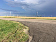 We saw 92 miles of wide open fields today! Much of the morning was spent riding through an enormous wind farm with what looked like hundreds of machines. We sometimes see parts of a new wind tower being transported on the road as an oversized load.